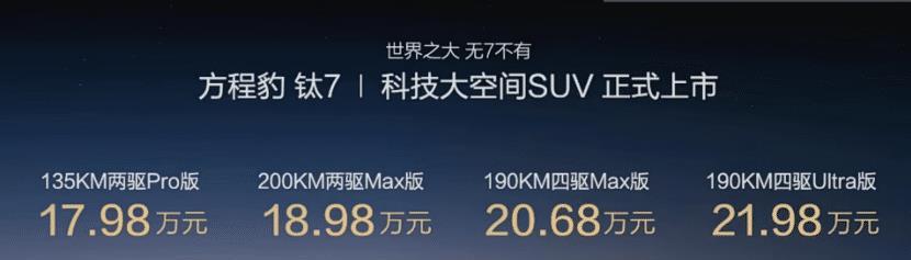 这句话代表了很多人的看法,在钛7上市前,行业内对它的价格期望一般都是20万出头起售,毕竟方程豹的品牌定位也撑得起这样的价格,结果正式的价格出人意料,这也从侧面反应出市场的竞争激烈程度。