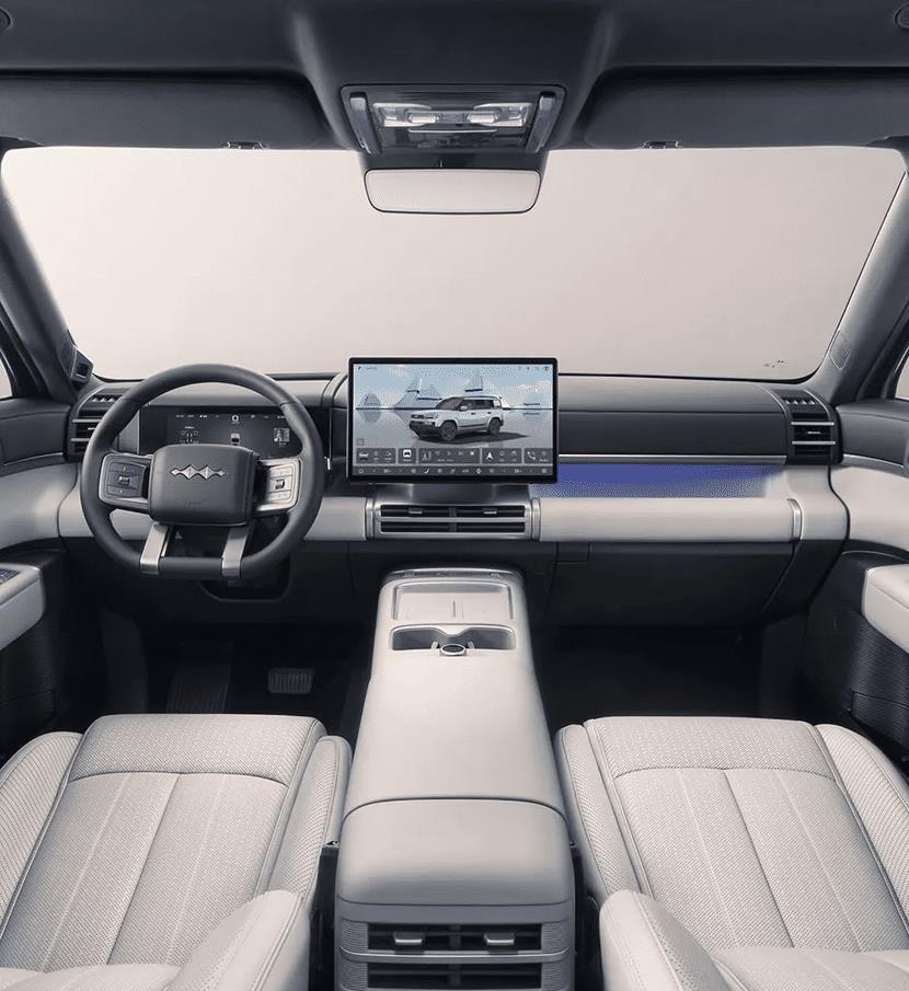 众所周知,钛系列在方程豹品牌里的定位是城市为主,此前推出了钛3,体型不大,主战场不在家用市场。钛7作为一款中大型SUV,车长接近5米,采用大五座的布局,主要产品点其实和市场上很多产品差不多,搭载一套1.5T插电混动系统,前驱和四驱两种驱动形式,顶配搭载激光雷达,其他配置都是天神之眼C方案。
